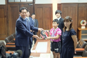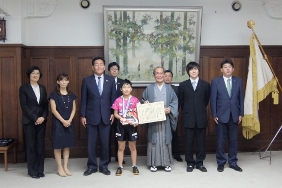 全農杯2019年全日本卓球選手権男子ホープスシングルスで優勝した松島輝空選手への京都市スポーツ大賞表彰式が開催され,議長が出席しました。