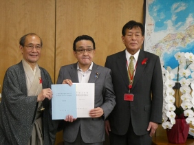 指定都市としての「大都市財政の実態に即応する財源の拡充についての要望」を取りまとめ,指定都市議長会と指定都市市長会の代表として,議長が門川市長と共に要請活動を行いました。