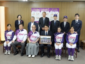 京都フローラが,2020シーズン終了に伴う報告のため京都市役所を表敬訪問され,議長,副議長共に出席しました。