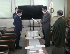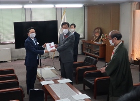 京都フローラ 2020シーズン終了に伴う表敬訪問(第一応接室)(山本議長,青野副議長出席)