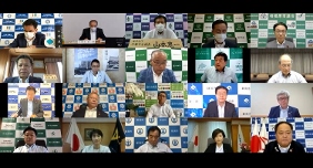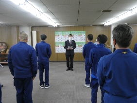 令和2年7月豪雨災害の被災地への災害廃棄物の収集運搬に関する職員派遣に係る出発式(第一応接室)(山本議長出席)