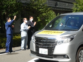 令和2年7月豪雨災害の被災地への災害廃棄物の収集運搬に関する職員派遣に係る出発式が開催され,議長が出席しました。