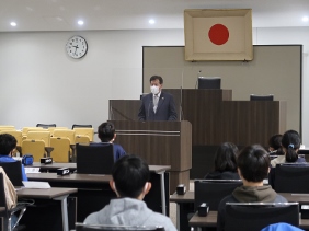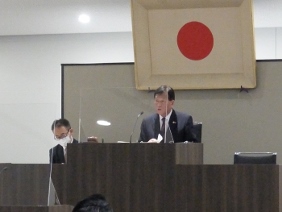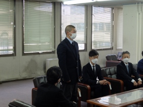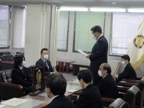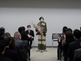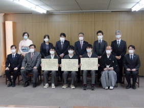 「Ikenobo 花の甲子園2020」で優勝された市立西京高等学校華道愛好会「花咲兄さんズ」の京都市文化芸術みらい賞表彰式が開催され,山本議長,青野副議長が出席しました。