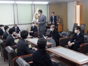 第93回選抜高等学校野球大会に出場する,京都国際高等学校が京都市役所を表敬訪問され,議長,副議長共に出席しました。