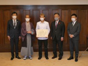 東京2020オリンピック競技大会 男子BMXフリースタイル・パークで第5位に入賞された中村輪夢選手の京都市スポーツ栄誉賞表彰式が開催され,議長が出席しました。