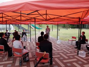 洛西竹林公園子どもの広場リニューアルオープン記念式典が開催され,議長,副議長共に出席しました。