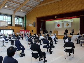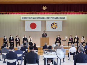 京都市立芸術大学及び京都市立銅駝美術工芸高等学校移転整備工事起工式(元崇仁小学校体育館)(田中議長,
