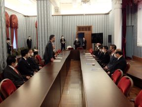 全国高等学校駅伝競走大会出場校の表敬訪問(正庁の間)(田中議長、