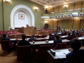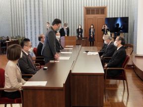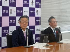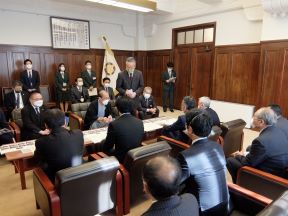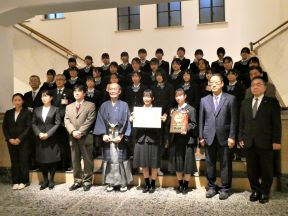 男子第73回・女子第34回全国高等学校駅伝競走大会に京都代表として出場する洛南高等学校(男子)・立命館宇治高等学校(女子)が京都市役所を表敬訪問され、議長、副議長共に出席しました。