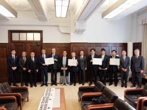 地下鉄烏丸線新型車両に係る伝統産業関係者への感謝状贈呈式(第一応接室)(田中議長、