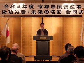 令和4年度京都市伝統産業技術功労者表彰式及び「未来の名匠」認定式合同式典が開催され、議長、副議長共に出席しました。