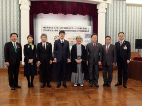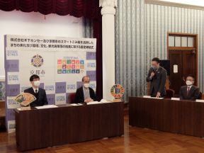 株式会社木下カンセー及び京都市のスマートごみ箱を活用したまちの美化及び環境、文化、観光施策等の推進に関する協定締結式(第一応接室)(田中議長、