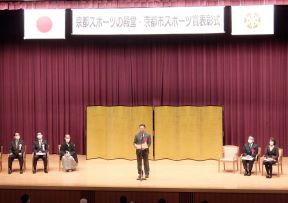 令和4年度「京都スポーツの殿堂」及び「京都市スポーツ賞」表彰式が開催され、議長、副議長共に出席しました。