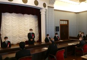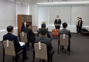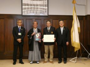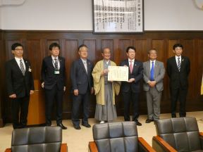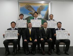 全国市議会議長会定期総会において,議員在職15年以上表彰を受賞された7名の議員に対し,議長,副議長から伝達表彰を行いました。