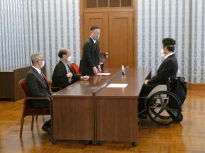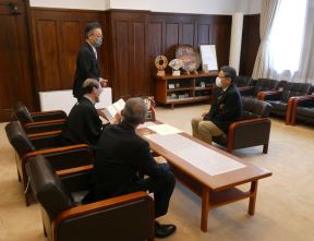 全国市議会議長会表彰伝達表彰式(市会運営委員会理事会室)(田中議長,