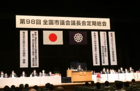 令和4年度京都府市議会議長会総会(開催市:京都市)を開催し,議長が挨拶・議事進行を行いました。