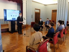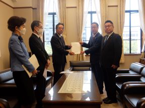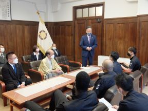 京都ハンナリーズが、シーズン開幕に当たり、京都市役所を表敬訪問され、議長、副議長共に出席しました。