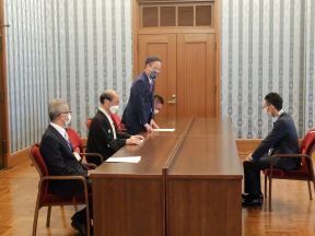 京都ハンナリーズ シーズン開幕に伴う表敬訪問(第一応接室)(田中議長、