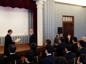 令和4年度「持続可能な京都観光を推進する優良事業者表彰」表彰式(正庁の間)(田中議長、