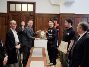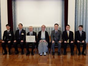 第95回選抜高等学校野球大会に出場する、龍谷大学付属平安高等学校が京都市役所を表敬訪問され、議長、副議長共に出席しました。