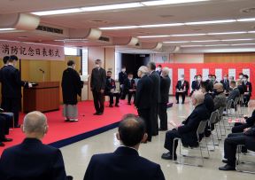 大雪に伴う列車内救急・救護活動に係る市長表彰・感謝状贈呈式(正庁の間)(田中議長、