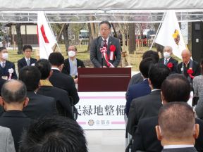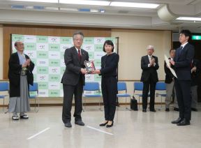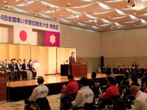 天皇盃 第34回全国車いす駅伝競走大会出発式・閉会式(出発式:国立京都国際会館前、閉会式:京都市体育館)(田中議長、