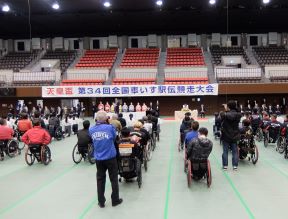 天皇盃 第34回全国車いす駅伝競走大会出発式・閉会式が開催され、議長、副議長共に出席しました。