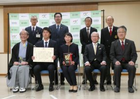 株式会社木下カンセーからのスマートごみ箱の寄付に係るお披露目式及び篤志者表彰式が開催され、議長、副議長共に出席しました。