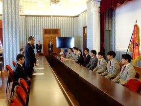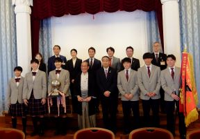 第103回全国高等学校ラグビーフットボール大会出場校(京都成章高等学校)の表敬訪問(正庁の間)(西村議長、平山副議長出席)