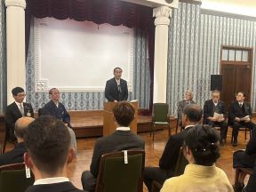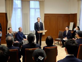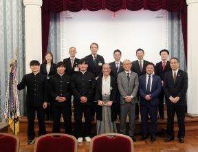 男子第74回・女子第35回全国高等学校駅伝競走大会出場 洛南高等学校(男子)、立命館宇治高等学校(女子)の表敬訪問(正庁の間)(西村議長、平山副議長出席)