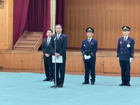 消防団激励巡視(北消防団紫竹分団、西京消防団川岡分団)(紫竹小学校、川岡小学校)(西村議長、平山副議長出席)