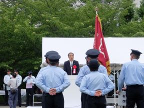 令和5年度京都市消防団総合査閲(京都市消防活動総合センター)(西村議長、平山副議長出席)