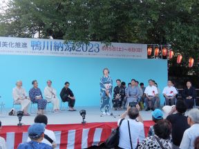 「鴨川納涼2023」オープニングセレモニー(鴨川三条大橋~四条大橋西岸河川敷)(西村議長、平山副議長出席)