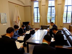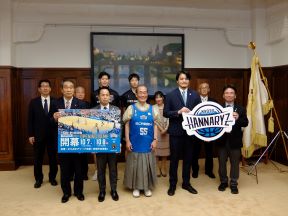 京都ハンナリーズ シーズン開幕に伴う表敬訪問(第一応接室)(西村議長、平山副議長出席)