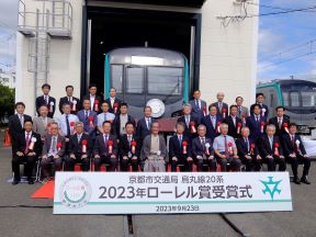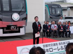 地下鉄烏丸線新型車両「鉄道友の会ローレル賞」受賞式(竹田車両基地)(平山副議長出席)