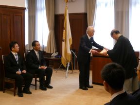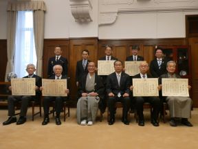 消防行政への功労に対する市長表彰式(第一応接室)(西村議長、平山副議長出席)
