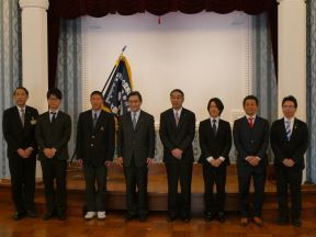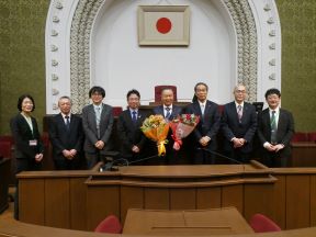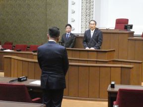 市会事務局人事異動発令式(転出)(市会議場)(西村議長、平山副議長出席)