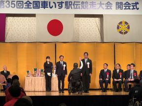 天皇盃 第35回全国車いす駅伝競走大会出発式・閉会式(出発式:国立京都国際会館前、閉会式:かたおかアリーナ京都)(西村議長、平山副議長出席)