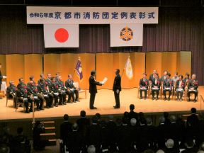 令和6年度京都市消防団定例表彰式(立命館大学朱雀キャンパス)(西村議長、平山副議長出席)
