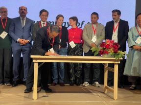 日中平和友好条約45周年記念「世界遺産 大シルクロード展」開会式(京都文化博物館)(西村議長、平山副議長出席)