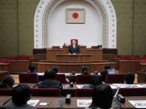 京都市会親子ふれあい議場見学会(市会議場)(西村議長、平山副議長出席)