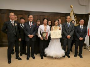 黄偉哲台南市長の表敬訪問(正庁の間)(西村議長出席)