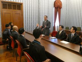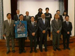 京都ハンナリーズ シーズン閉幕に伴う表敬訪問(正庁の間)(西村議長、平山副議長出席)