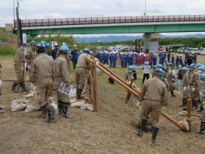 澱川右岸水防事務組合及び桂川・小畑川水防事務組合 令和6年度水防訓練(淀川(宇治川)右岸淀大橋下流河川敷)(西村議長、平山副議長出席)