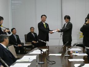 京都市ケアラー支援条例(仮称)制定プロジェクトチーム発足式及び京都ケアラーネットからの要望書受領式(市会運営委員会室)(西村議長、平山副議長出席)