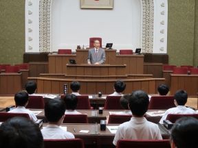 岩倉北小学校議場見学(市会議場)(西村議長出席)