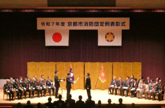 令和7年度京都市消防団定例表彰式(立命館大学朱雀キャンパス)(下村議長、吉田副議長出席)