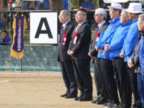 第72回京都市ソフトボール大会、第35回京都市壮年ソフトボール大会開会式(岩倉東公園グラウンド)(下村議長、吉田副議長出席)