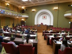 京都市会親子ふれあい議場見学会(市会議場)(下村議長出席)