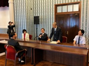 京都市立美術工芸高校への感謝状贈呈式(市会第1委員会室)(下村議長、吉田副議長出席)
